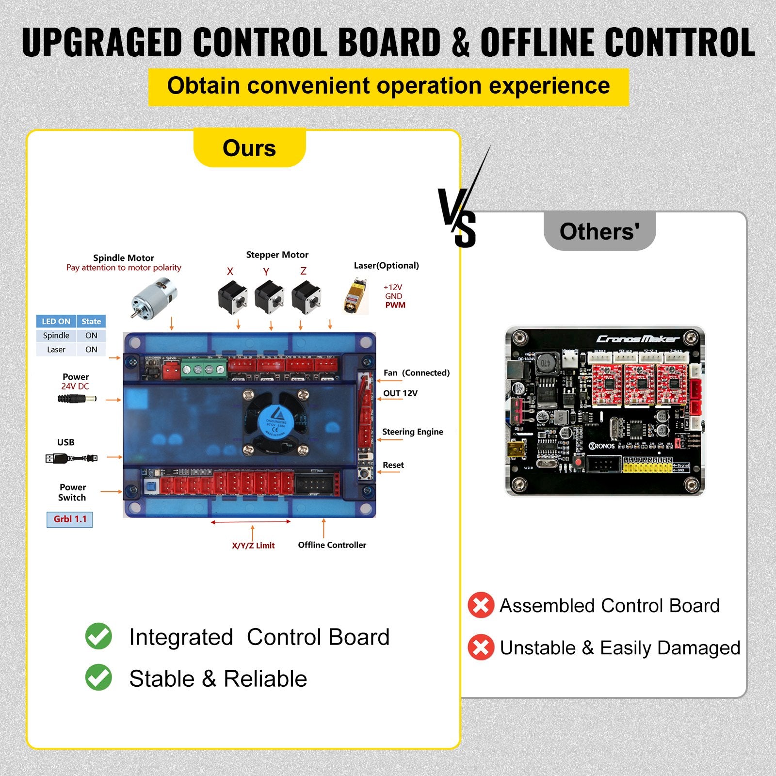 Excellent Motor: This CNC engraving machine is equipped with three stepper motors (1.3A; 12V; 0.32Nm torque) and 775 DC 24V spindle motors with a rotation speed of 10,000rpm. The CNC engraving machine software supports the execution of standard G-code processing files for tool-based engraving and cutting, such as relief carving and various tool paths.