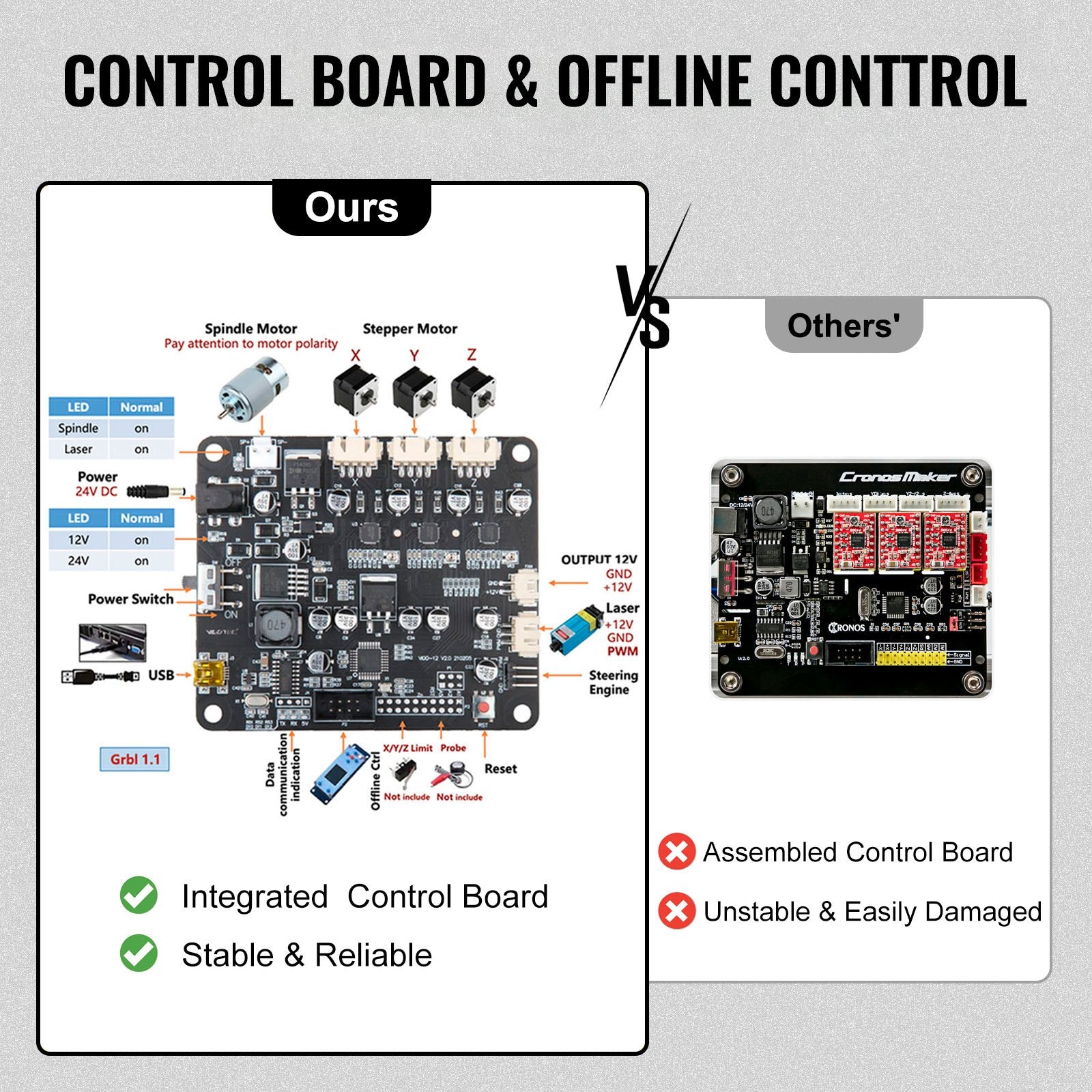 CNC 3018 Router Machine: CNC 3018 PRO is an upgraded version of 3018 CNC. 15000mW laser driver interface supports PWM, TTL functions for full-function laser engraving. We provide a detailed user manual, assembly instructions and installation video for your convenience. You can enjoy the joy of engraving plastic, soft aluminum, acrylic, PVC, PCB and many more.