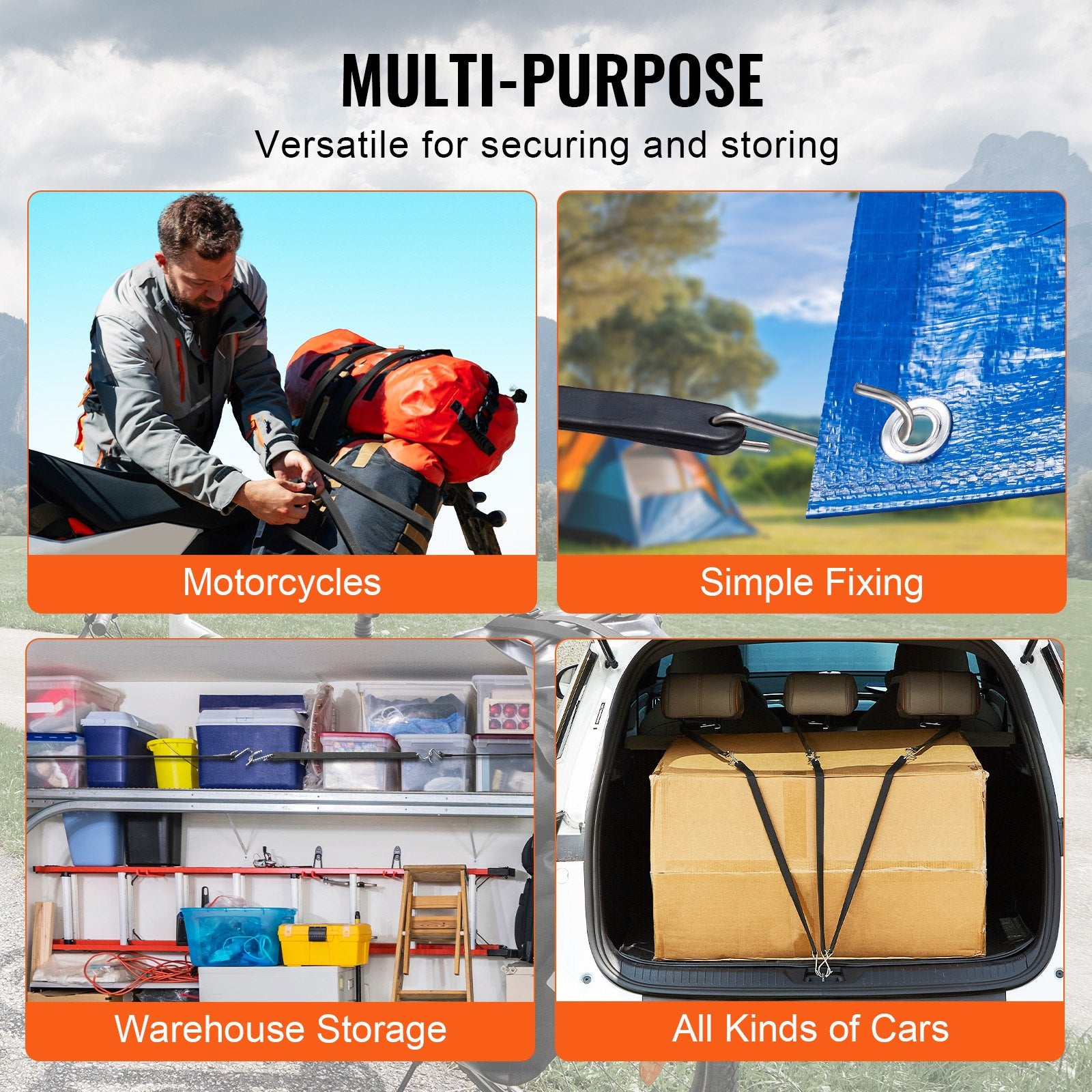 Versatility: Suitable for home organization, outdoor adventures, or logistics, these bungee straps easily handle any task and meet a wide range of needs for securing or storing items.