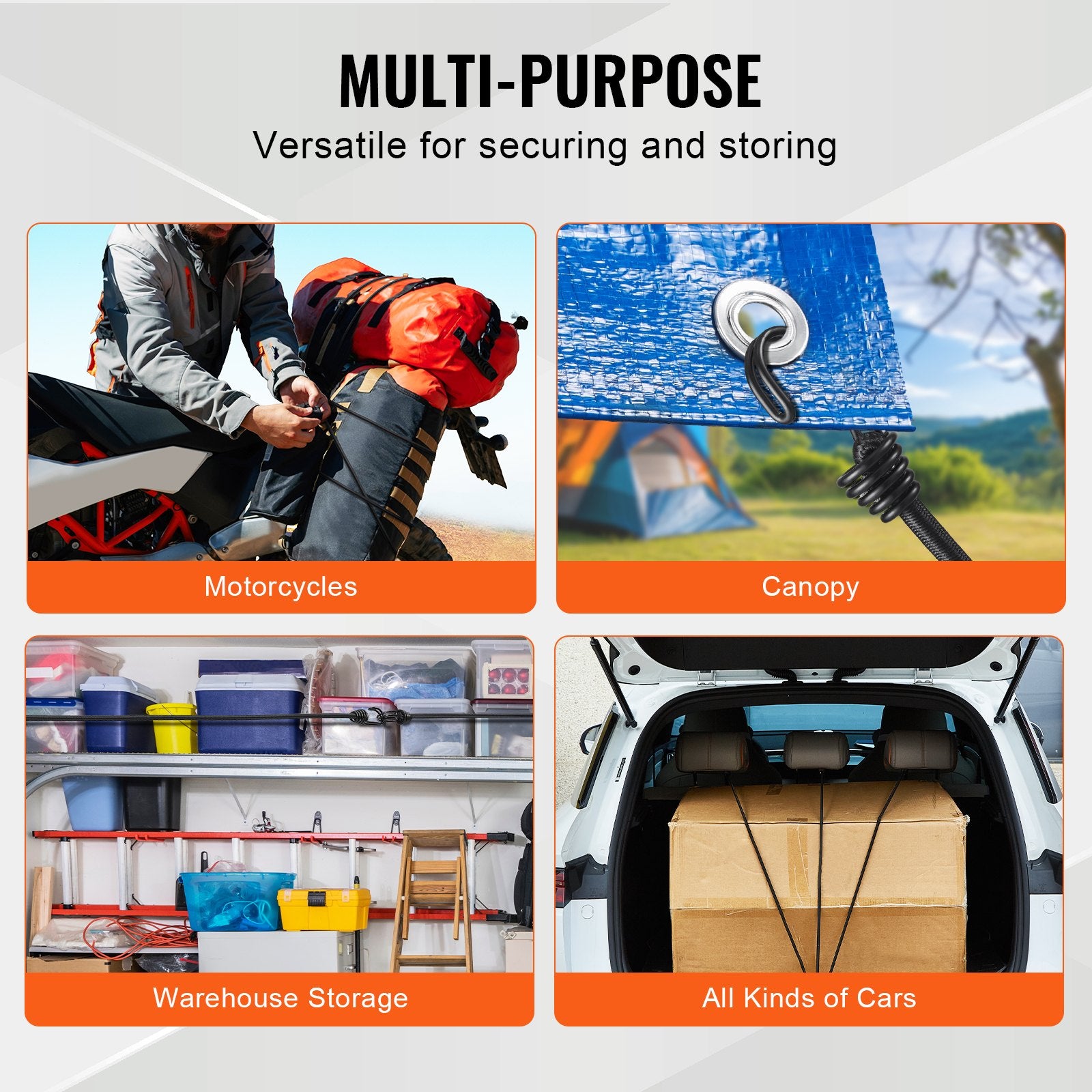 Versatility: Suitable for home organization, outdoor adventures, or logistics, these bungee straps easily handle any task and meet a wide range of needs for securing or storing items.