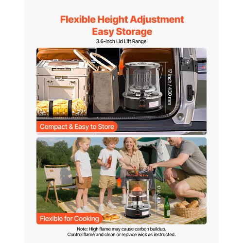 Problemfri användning: Har en justerbar höjdknapp, EZ-flamkontroll, bränslemätare och säkerhetsgaller, vilket garanterar bekvämlighet och trygghet under användning. Denna fotogenvärmare är ett utmärkt val för både inomhus- och utomhusbruk.