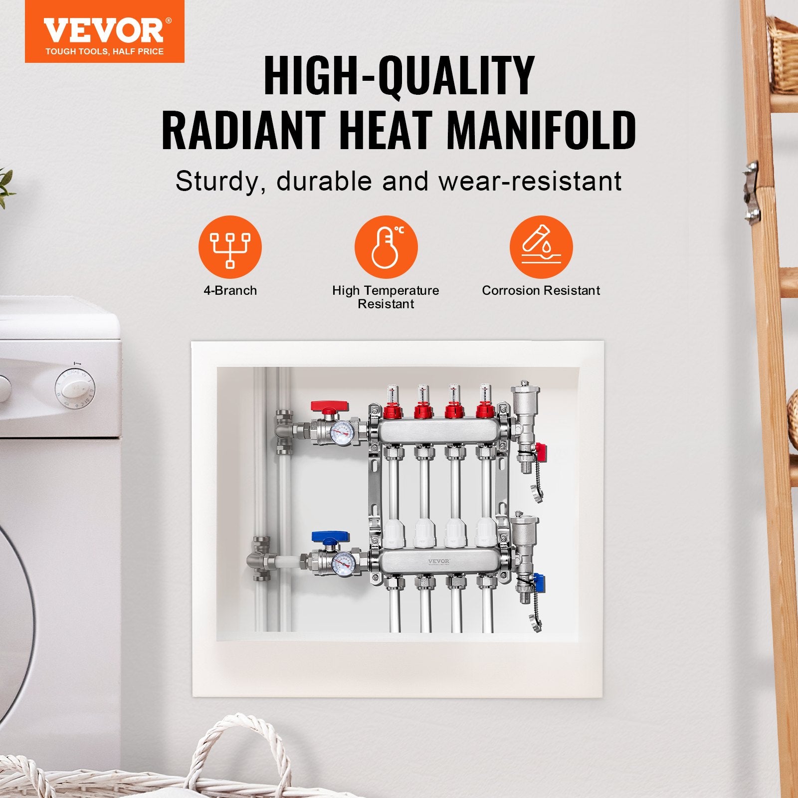 Built to last: VEVOR pex pipe manifold is made of durable 304 stainless steel, resistant to high temperatures, corrosion and pressure. It maintains its shape and integrity during long-term use, offering higher thermal conductivity, faster heating rates and faster insertion of plastic pipes.