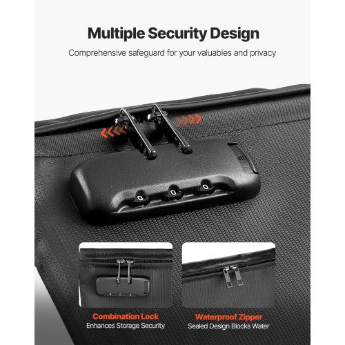Dubbel säkerhet: Den brandsäkra arkivväskan har ett 3-siffrigt kombinationslås och en vattentät dragkedja, vilket skapar en säker barriär för värdesaker. Kombinationslåset hjälper till att förhindra manipulering, medan den vattentäta dragkedjan tål högtrycksvattenstrålar, vilket ger pålitlig säkerhet i nödsituationer eller daglig användning.