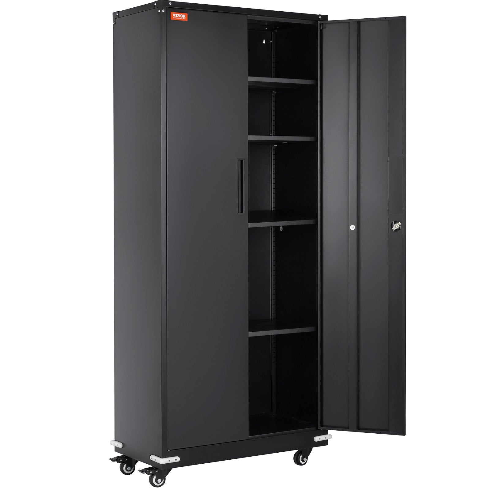 Metal Storage Cabinet with Wheels, 75 in Locking Cabinet with 4 Adjustable Shelves and 2 Magnetic Doors, 200 lbs Capacity Per Shelf, Metal Cabinet with 3 Keys for Office, Garage, Home, Black