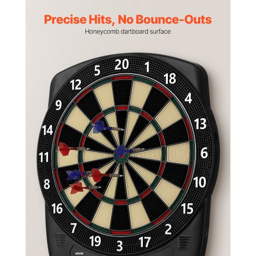Minskad studs: Vår elektroniska darttavla har en bikakeformad måldesign med fint uppdelade kanter för att förbättra träfffrekvensen och minimera studs. Kombinerat med de medföljande mjuka pilspetsarna möjliggör den säkert och fritt spel utan att skada dina väggar.