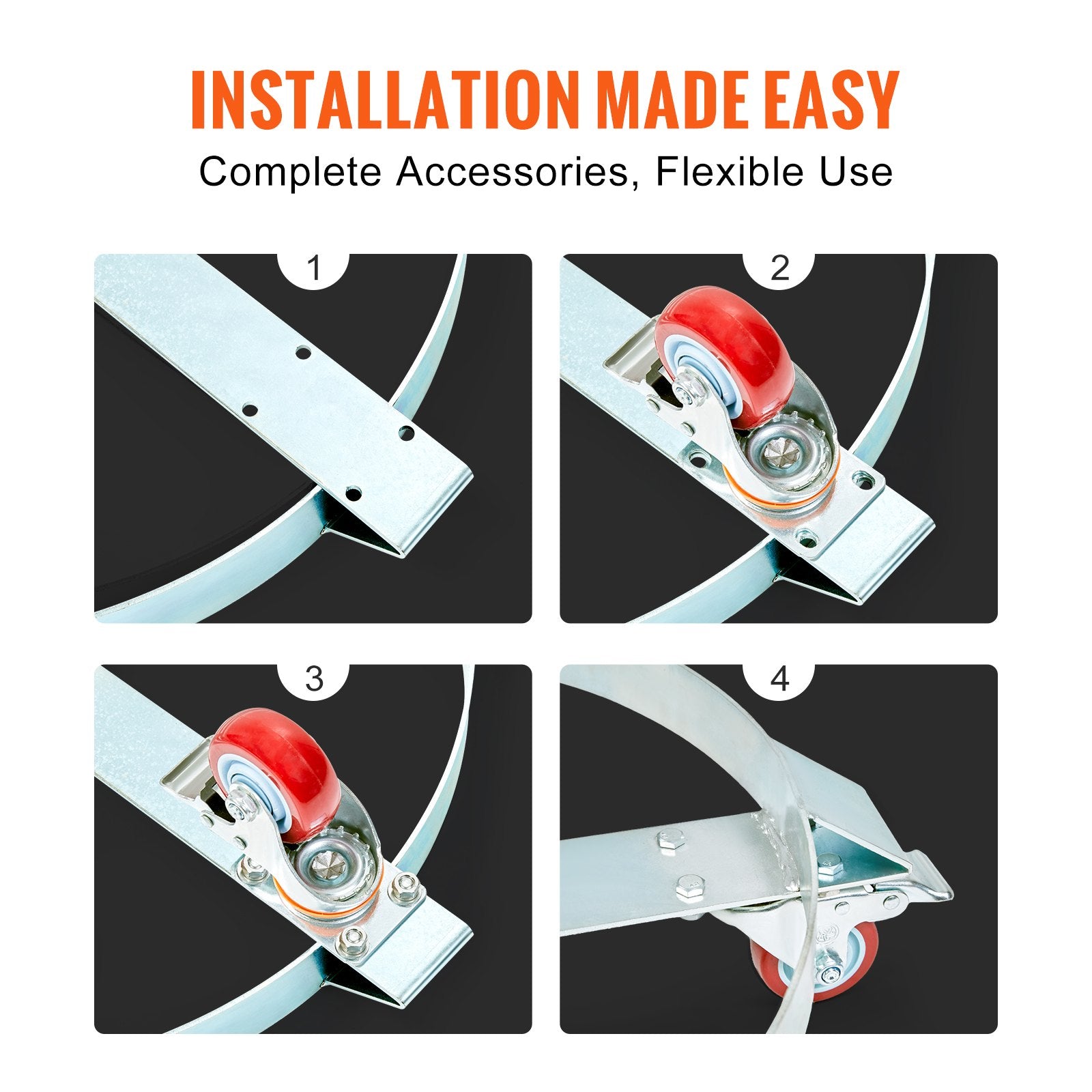 Smooth Movement: The drum cart is designed with 5 universal wheels, two of which have brakes, making it easy to adjust the direction and brake whenever and wherever you want. You can move the drum dolly whenever you want, even in tight spaces. Anti-tip wings reduce the risk of spills.