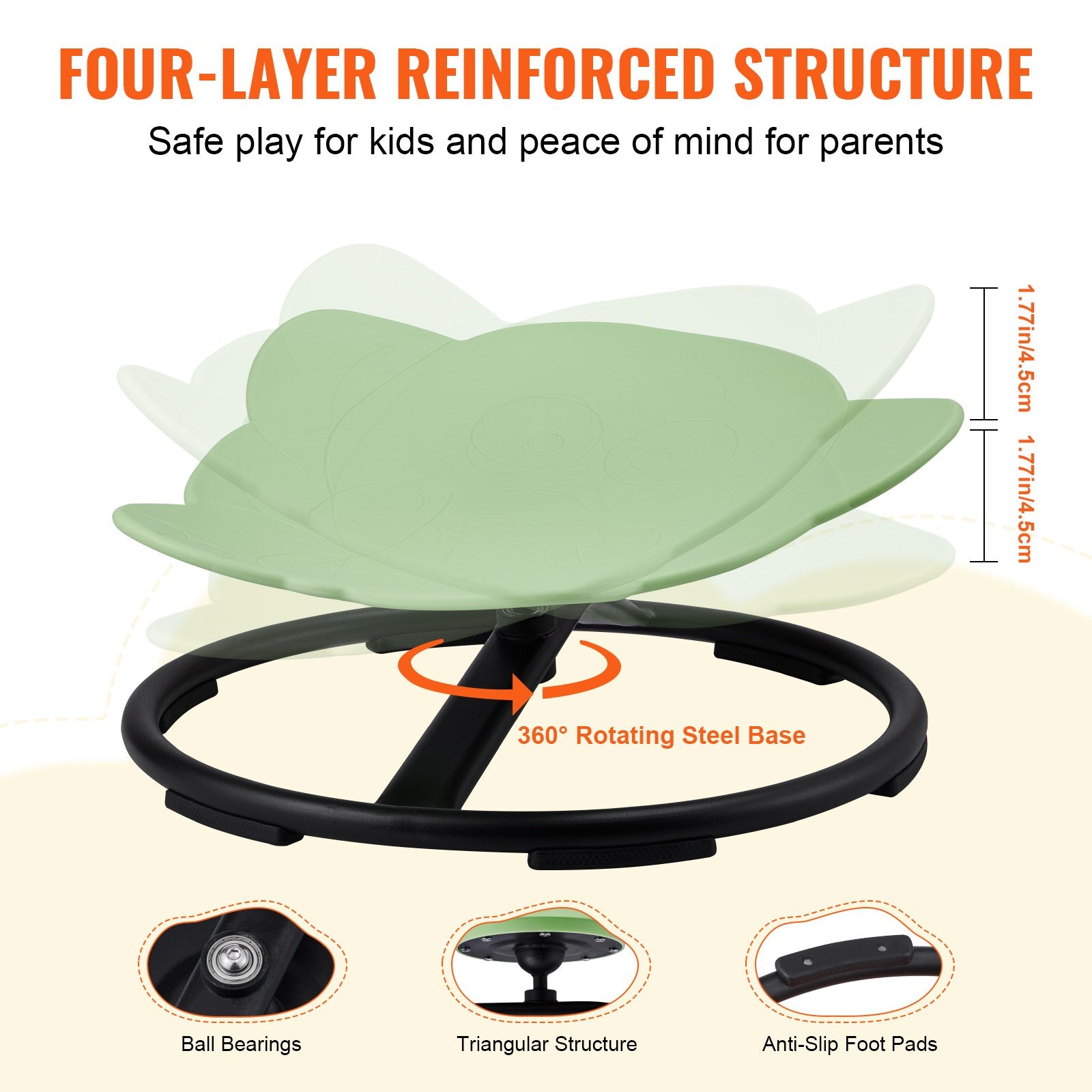 Safe Materials: We prioritize safety with environmentally friendly PP material, molded in one piece. The edges are carefully polished for smoothness, preventing damage. The recessed sensory seat provides comfort, and the thickened edges provide a secure grip for children when spinning.