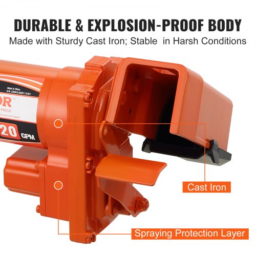 Effektiv bränsleöverföring: Susa igenom bränsleöverföringar med vår bränsleöverföringspumps 3000 r/min-motor! Med ett snabbt flöde på upp till 20 GPM, en huvudlyft på ≥7,2 m och en sughöjd på ≥9,6 m, kommer du att ha traktortanken full på ungefär 22 sekunder.