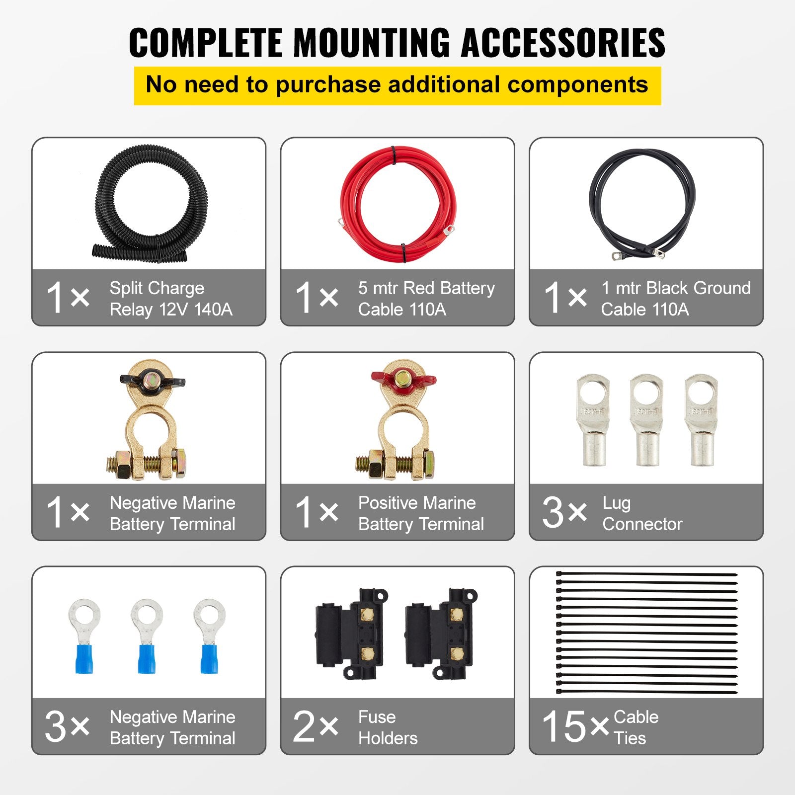 Split Charge Relay Kit, 5mtr 12V, Automatic Dual Battery Isolator Kit with 140AMP Voltage Sense Relay VSR, Compatible with RV Marine Car Vehicle Truck Caravan Camper Yacht ATV UTV Boats Workshop