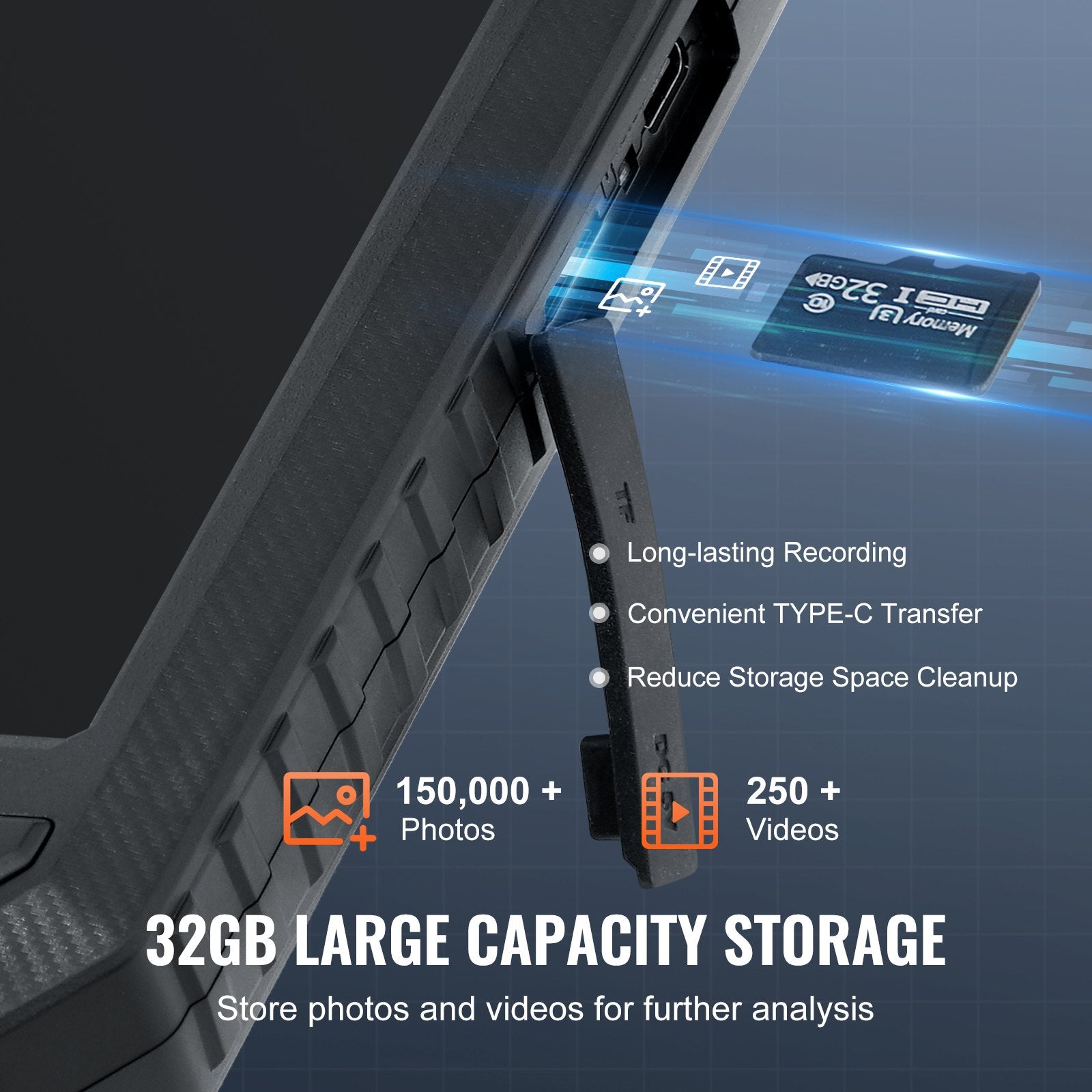 User-friendly operation: VEVOR 1920*1080 borescope is optimized with various thoughtful designs: photo and video shooting, 180° image rotation, high-capacity 2000mAh battery, Type-C fast charging, 32GB card and useful accessories - hook, magnet, protective cover