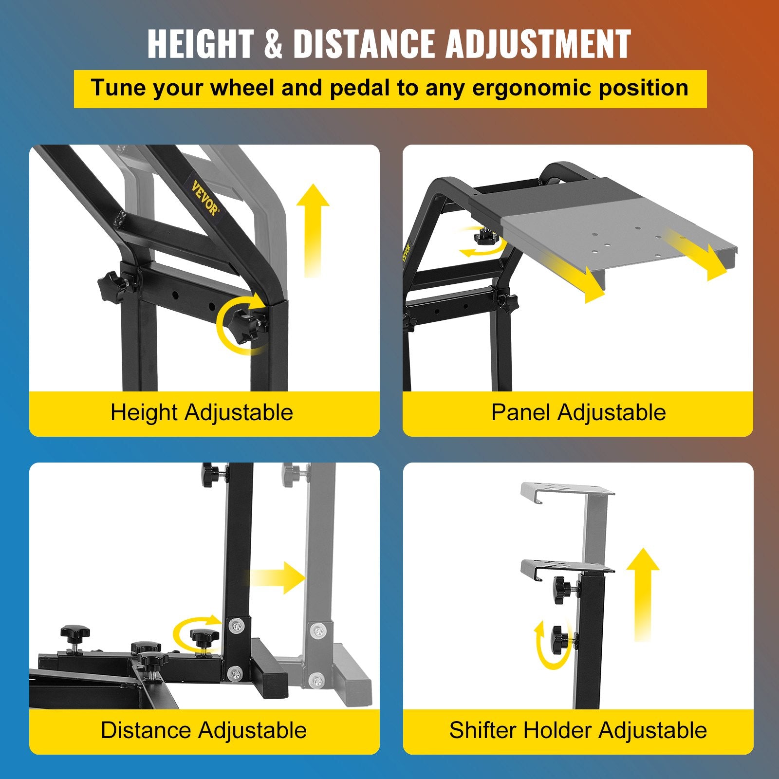 Easy to assemble: Assembling this racing wheel stand is a piece of cake, and even non-professionals can complete it in minutes. You just need to adjust the parts to the desired position and height and tighten the screws. Such a simple installation allows you to get into the game without waiting quickly.