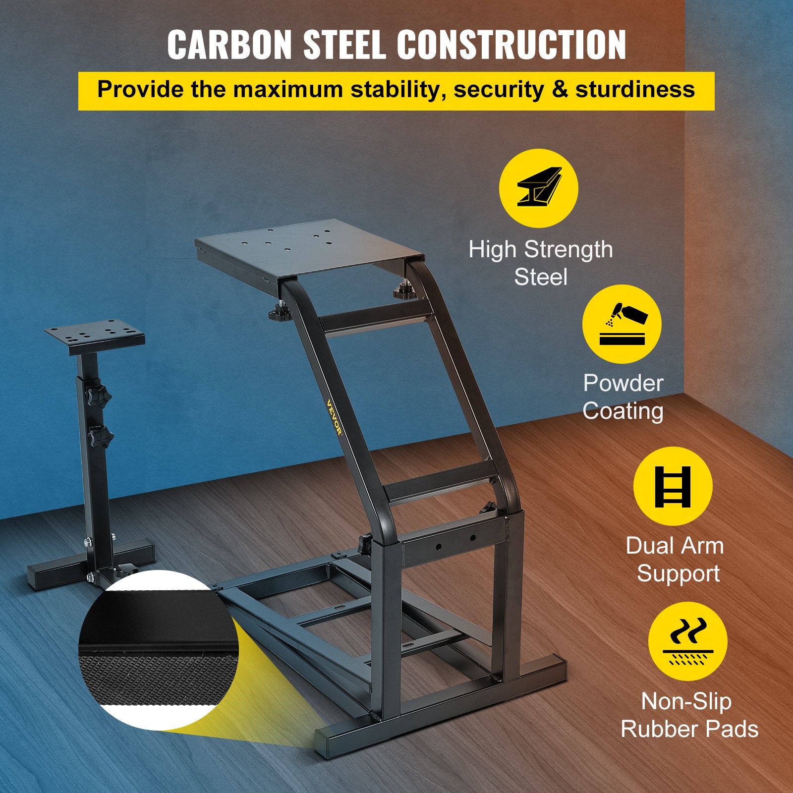 Durable Wheel Stand: This wheel racing stand is constructed with high-strength carbon steel, providing maximum stability and sturdiness for long-term use. Such a sturdy mount will not move or fall in the fierce competition. In addition, each support point comes with rubber pads to enhance safety.