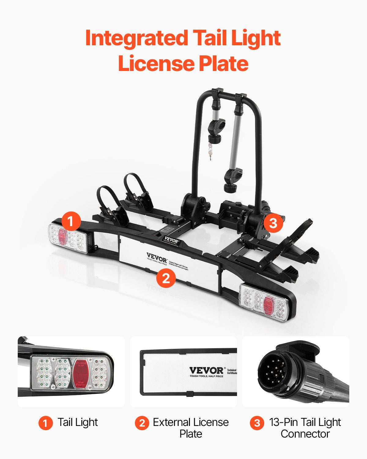 Taillight & External License Plate: Our bike rack features a 13-pin connector and can be easily integrated with your vehicle's signal lights. The highly visible external license plate improves nighttime visibility and ensures compliance with legal requirements.