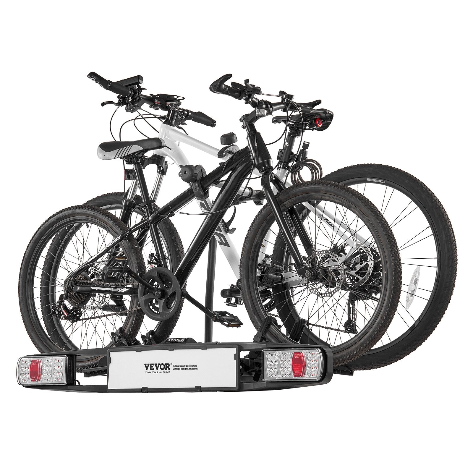 Hitch Bike Rack: Our bike rack supports up to 143 lbs/65 kg, securely and stably holding two bikes. Whether on smooth city streets or bumpy outdoor trails, it ensures reliable protection.