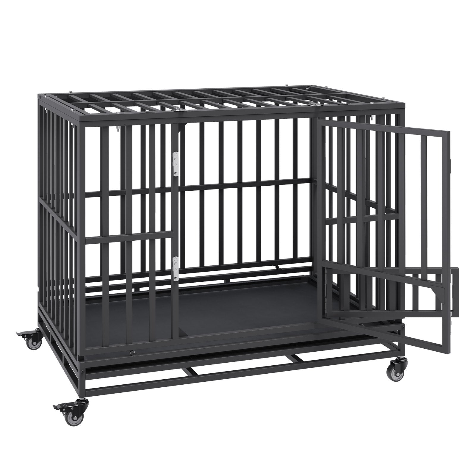 Easy Mobility: The heavy-duty dog crate features 360° lockable swivel wheels, making it easy to move around while ensuring stability. Easily transport the crate indoors or outdoors, allowing your pet to enjoy different environments.
