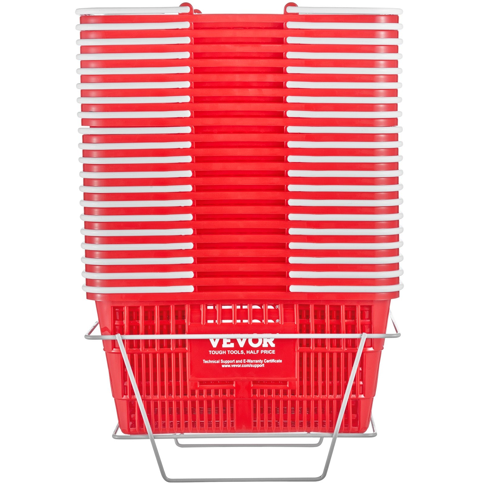 Shopping Cart Portable Food Basket 20pcs 21L with Handle and Stand Red