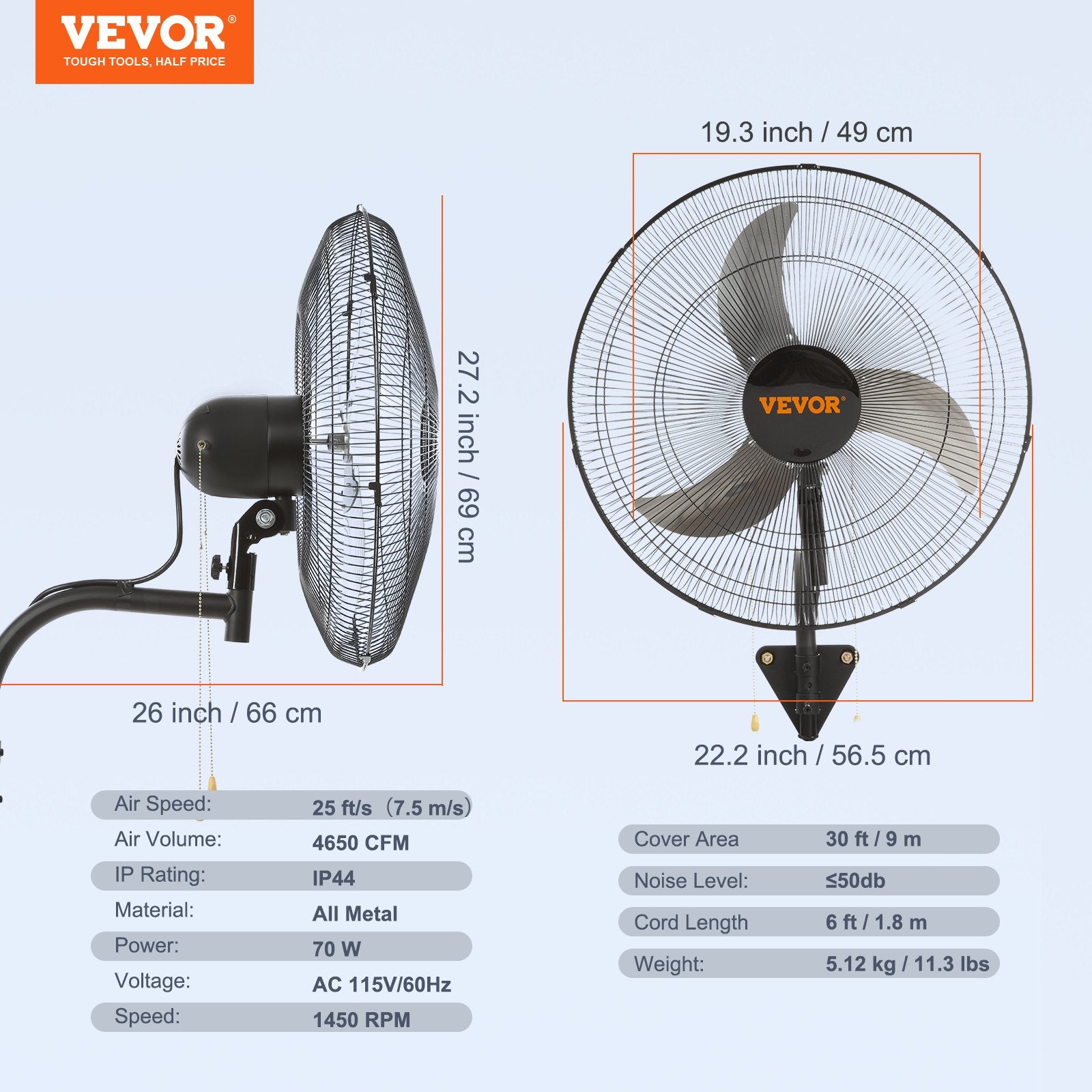 Power in Silence: The fully sealed 70W 1450 RPM motor and all-metal housing contribute to a larger air movement area with less noise. For maximum convenience, our wall fan comes with a 1.8m power cord. Keep the flies away during those relaxing summer days!