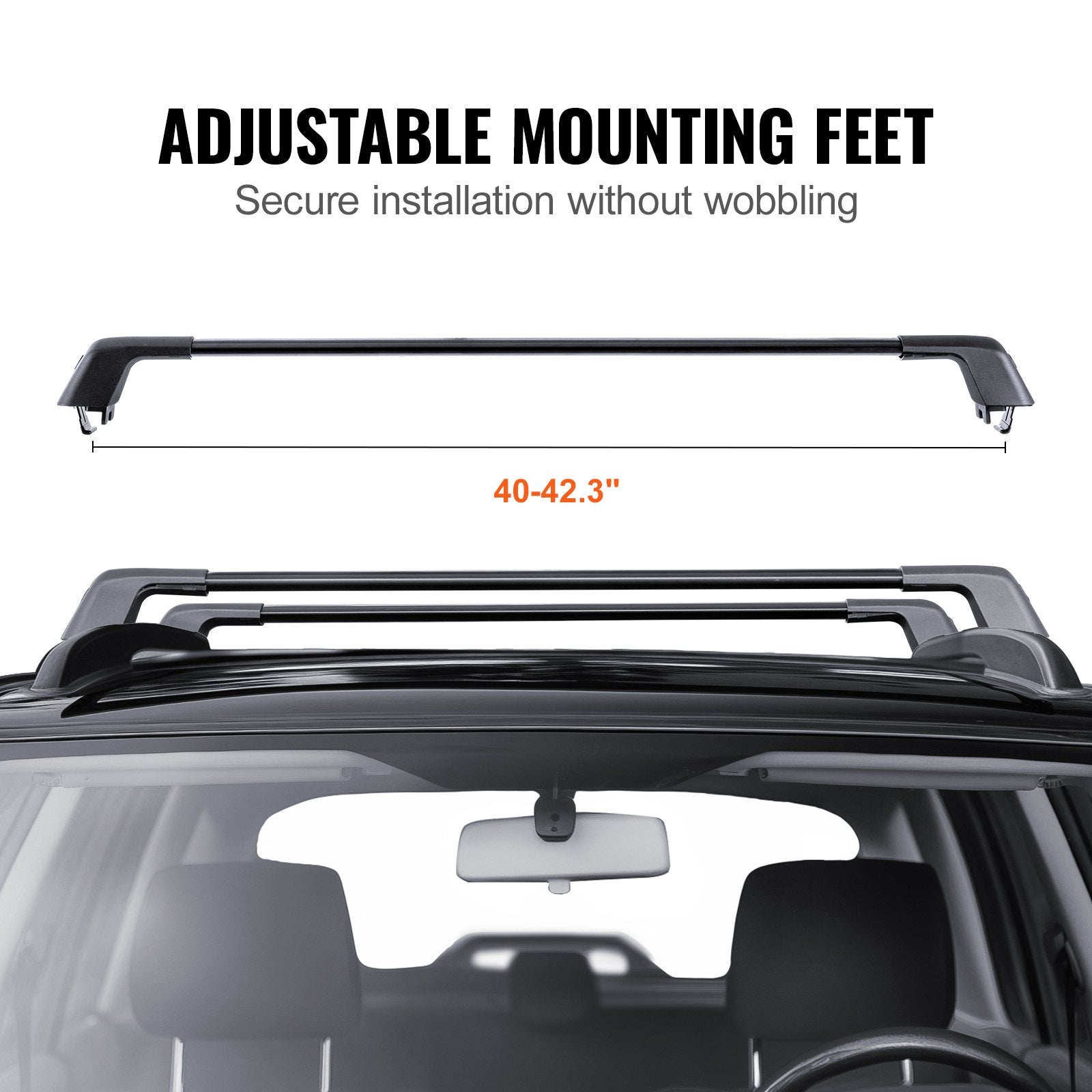 Universal Roof Rack: Our 114.8-120.8 cm (45.2-47.6 in) roof rack crossbars are designed to fit most closed roof vehicles with ribbed side rails (without gaps), and the inner width of the side bags must be 101.5-107.5 cm (40-42.3 in). No drilling required - the flexible mounting feet can be flexibly adjusted to perfectly match your vehicle's roof.