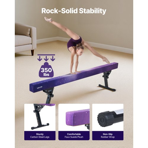 Känsla på tävlingsnivå: Gymnastikbommen är designad med rundade kanter och insvept i slitstark syntetisk mocka, och ger en mjuk, halkfri yta med precis rätt grepp och rätt friktion. Bekväm och pålitlig för barn att träna utan att halka.