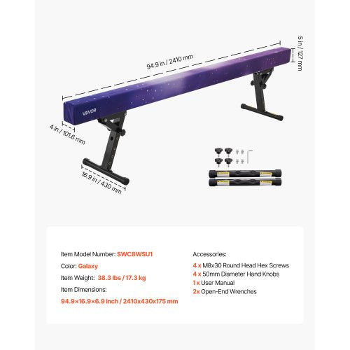 Justerbar Balansbom för Barn, 2,4 m Gymnastikbom, Höga och låga golvbalkar med 5 justerbara höjder för alla gymnastiknivåer, Professionell Gymnastikutrustning för Hem och Gym, Galaxy | EU