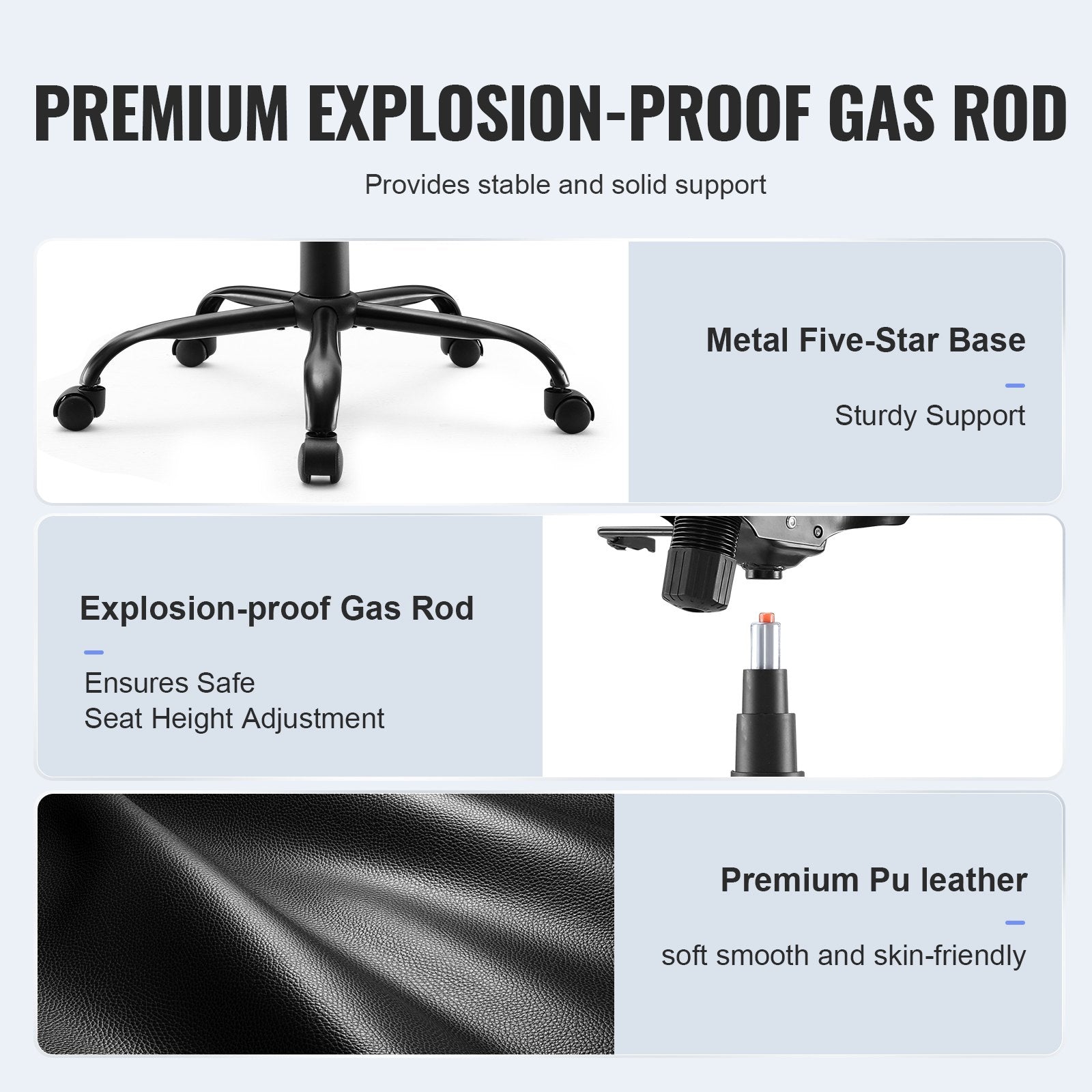 Durable Quality: The comfortable office chair with a capacity of 300 lbs, a metal base and a skin-friendly, soft PU leather feel, provides better quality and durability, providing stable support and a comfortable touch for long-term use.