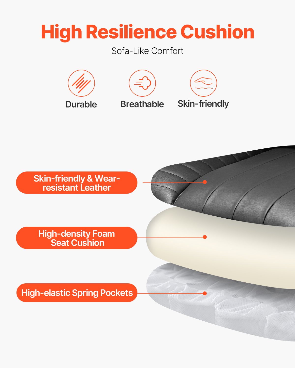 Comfortable recline: This model has a 100°-115° rocking angle, perfect for a gentle recline that promotes relaxation. The adjustable lumbar cushion specifically targets lower back fatigue, providing extra comfort during long sitting sessions. The waterfall-edged seat cushion also reduces pressure on your legs, making your sitting experience even more enjoyable.