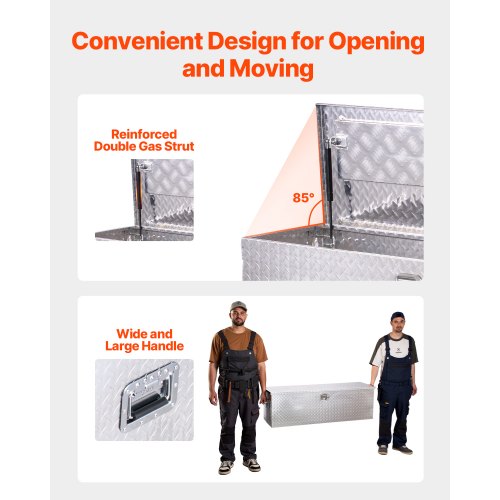 Waterproof and corrosion-resistant: The aluminum tool box lid has folded edges, ensuring a tight seal that prevents rain and dust from getting in. This keeps your tools dry even in heavy rain or dusty conditions.