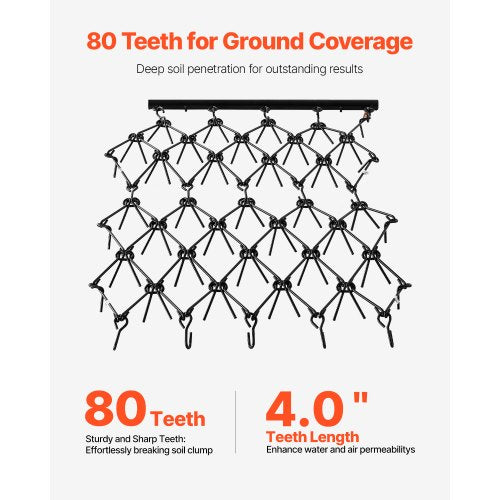 Remarkable leveling effect: With 80 tines, each 14 cm long, this chain harrow easily breaks up clods and loosens hard soil, ensuring a smooth and refined surface. With a weight of 22.5 kg, it effectively levels the ground, making tillage fast and efficient.