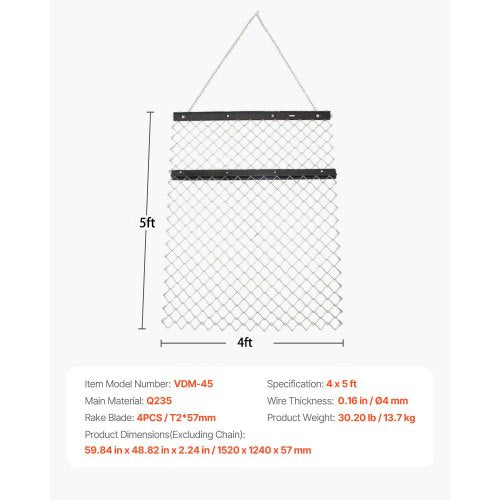 Pull Harrow 4 x 5 ft Chain Harrow Lawn Mower ATV UTV Tractor Accessories | EU