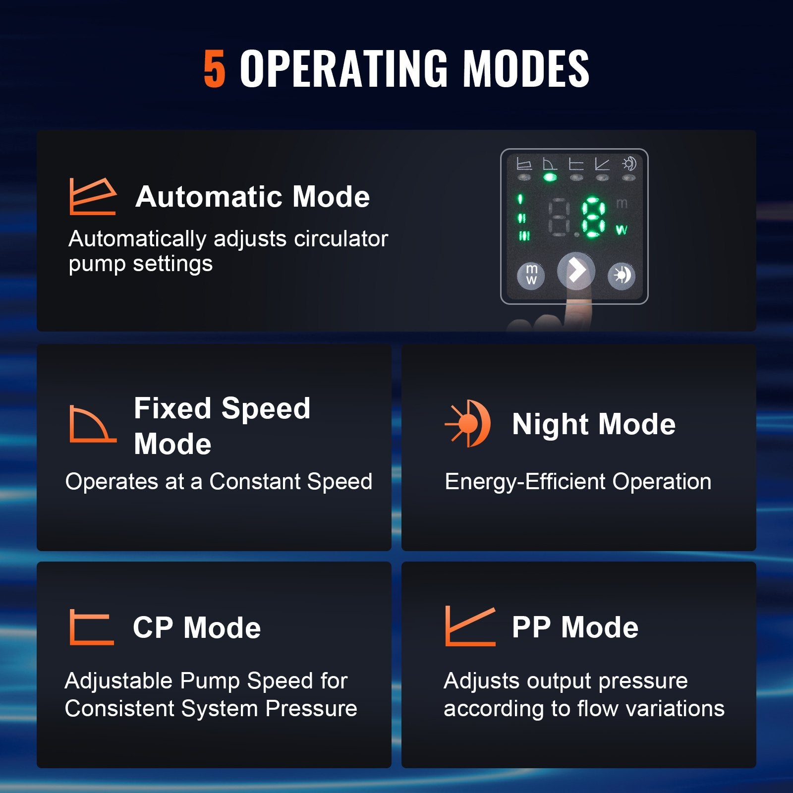 Intelligent Control Modes: Equipped with five smart control modes - Automatic, Constant Speed, Constant Pressure, Proportional Pressure and Night Mode - this cast iron circulator automatically adjusts its operation based on your needs. Optimize the performance of your heating system, improve comfort and reduce energy consumption with customized settings.
