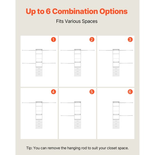 Flexibel konfiguration: Stängerna kan roteras eller tas bort för att passa din garderobsutrymme. Flera layouter gör den lämplig för sovrum, tvättstugor eller klädkammare