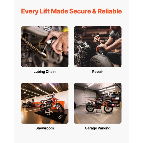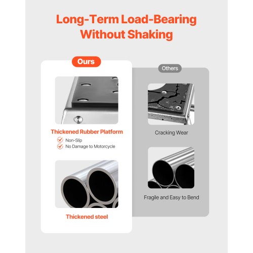 Anti-slip: The platform surface is equipped with thick non-slip rubber pads that grip the underside of the motorcycle firmly and prevent it from slipping while protecting the engine from scratches or damage.