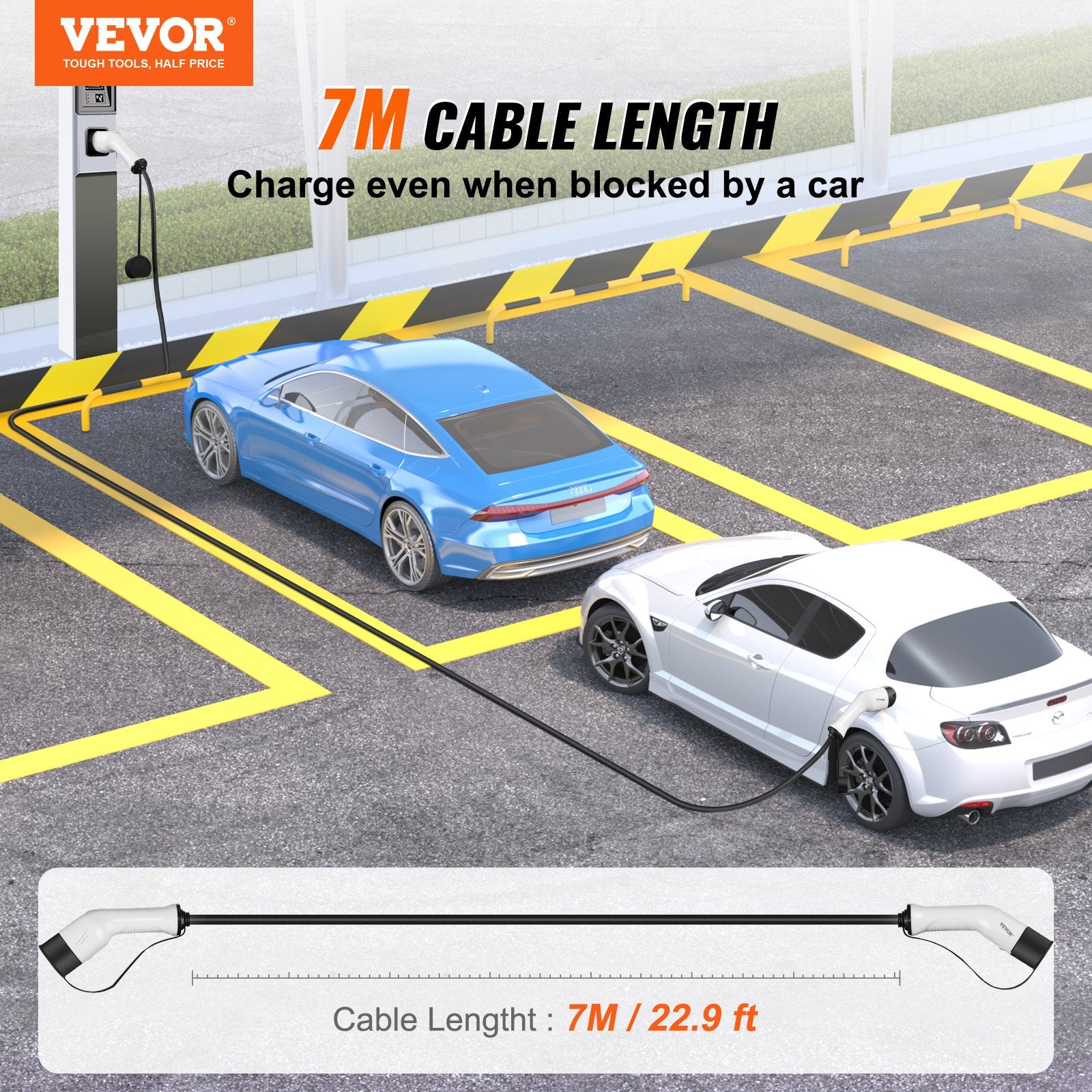 Reach further than ever: Tired of going to charging stations to charge your car? Get ready to charge whenever you want. The 22.9 ft/7 m long EV charging cable allows you to charge your car at home or at public charging points whenever you want, adapting to the charging port position of all models.