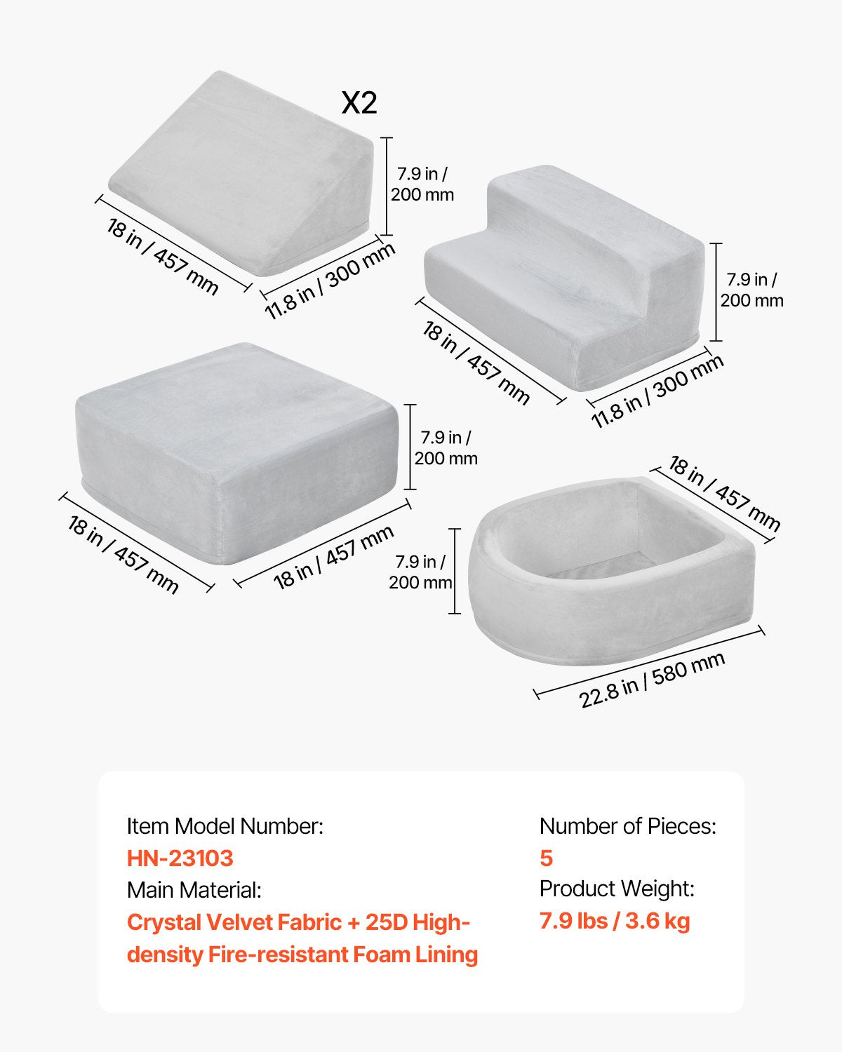 Soft and Durable: The baby climbing blocks are equipped with ultra-soft velvet fabric and filled with 25D high-density foam for excellent support, making it ideal for babies to climb or walk on. This promotes body coordination, improves motor skills and helps absorb shock to avoid fall injuries. (Allow 48-72 hours for full expansion after unpacking.)