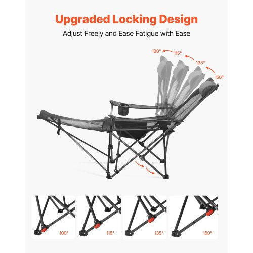 Justerbar lutning: Den hopfällbara fåtöljen har ett uppgraderat låssystem. Växla mellan fyra justerbara vinklar med en röd knapp för att möta olika sittbehov. Det medföljande avtagbara fotstödet låter dig växla mellan sittande och lutande position. Oavsett om du läser, sover eller slappar, stöder den dig alltid bekvämt.