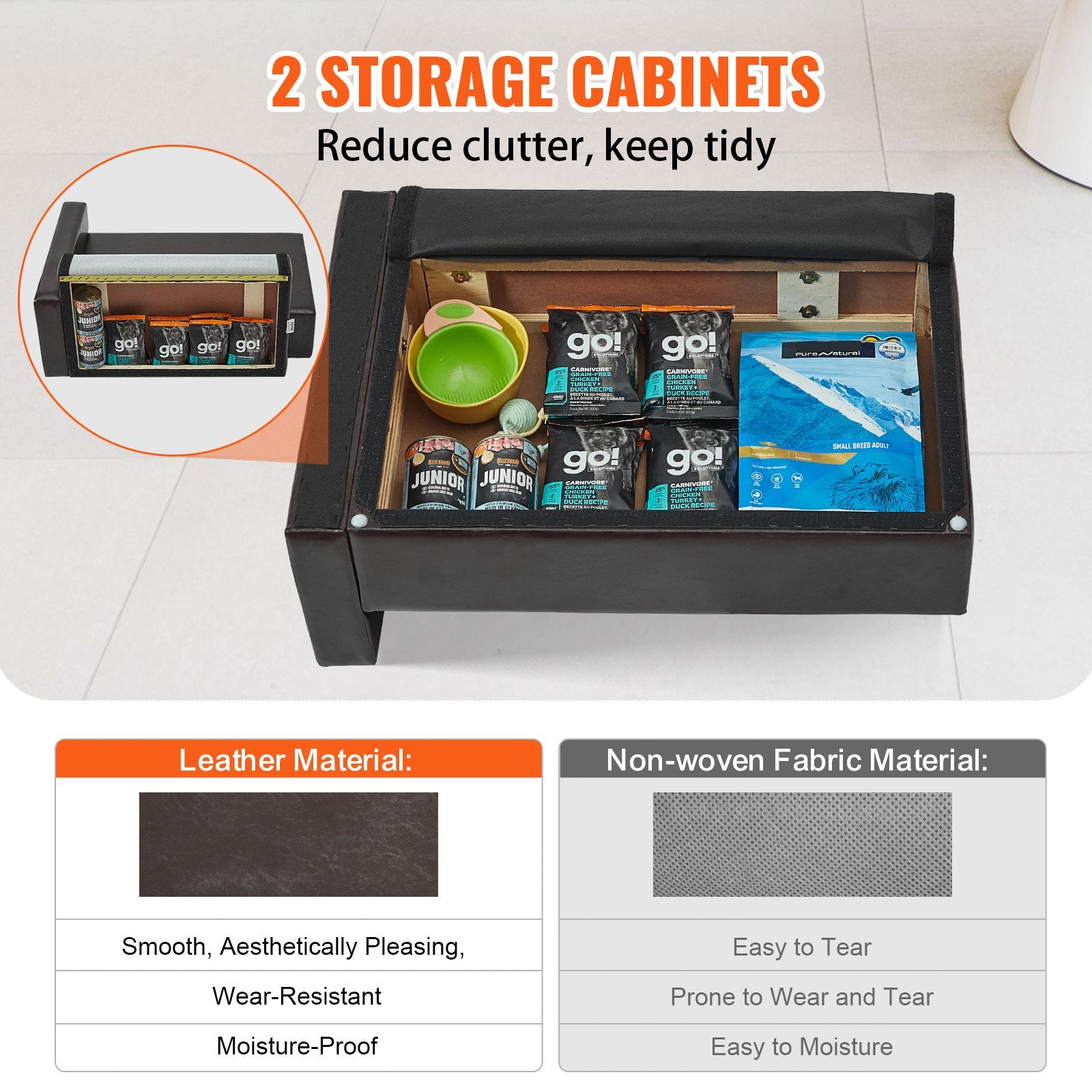 Practicality meets style: More than just a pet accessory, our dog sofa effortlessly complements your home decor. The smart design of the 2 storage cabinets frees up space and its look blends seamlessly with any interior style.