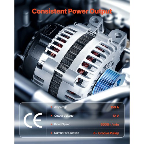 Stable Performance: This alternator replacement delivers efficient 12V DC output to power your vehicle's systems. The 6-groove pulley ensures steady, slip-free operation up to 6000 RPM - keeping ignition, lighting and infotainment running smoothly.