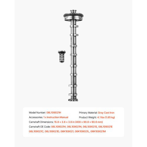Complete Kit: Camshaft OE: 06L109021H, 06L109021N, 06L109021S, etc. This camshaft kit includes camshaft and control valve, designed to match OEM specifications.