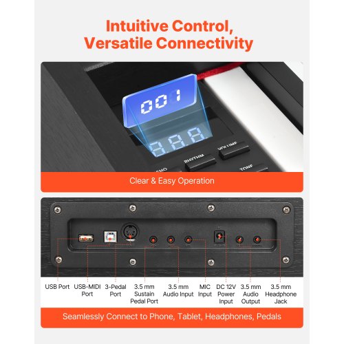 Smart inlärningsupplevelse: Detta elpiano med 88 viktade tangenter stöder trådlös anslutning och olika appar och enheter. Det har 238 rytmer, 238 toner och 100 demolåtar, vilket gör inlärningen enkel och effektiv.