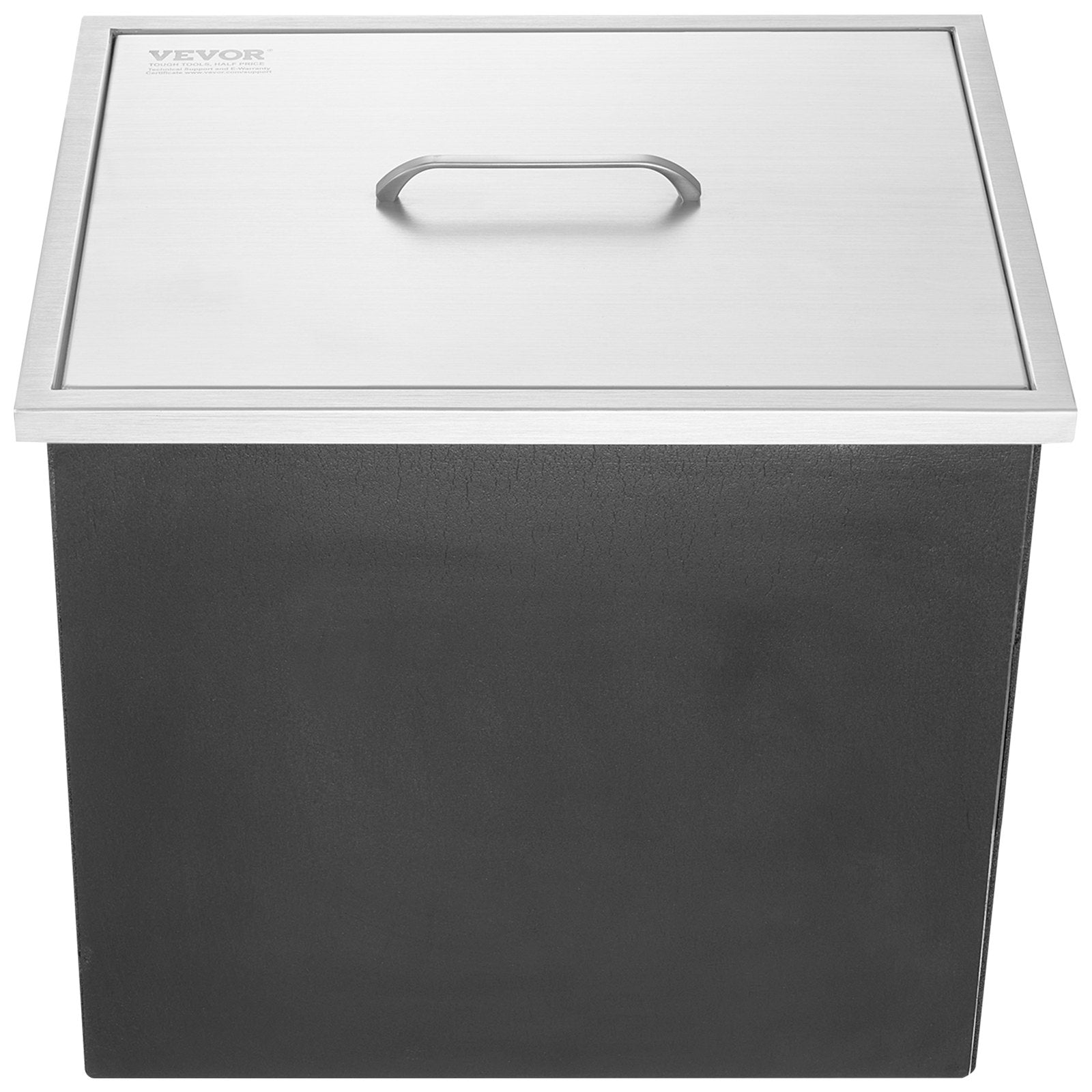 Drop in Ice Chest, 20"L x 14"W x 12"H Stainless Steel Ice Cooler, Commercial Ice Container with Lid, 40 qt Outdoor Kitchen Ice Bar, Drain Pipe and Drain Plug Included, for Cold Wine Beer