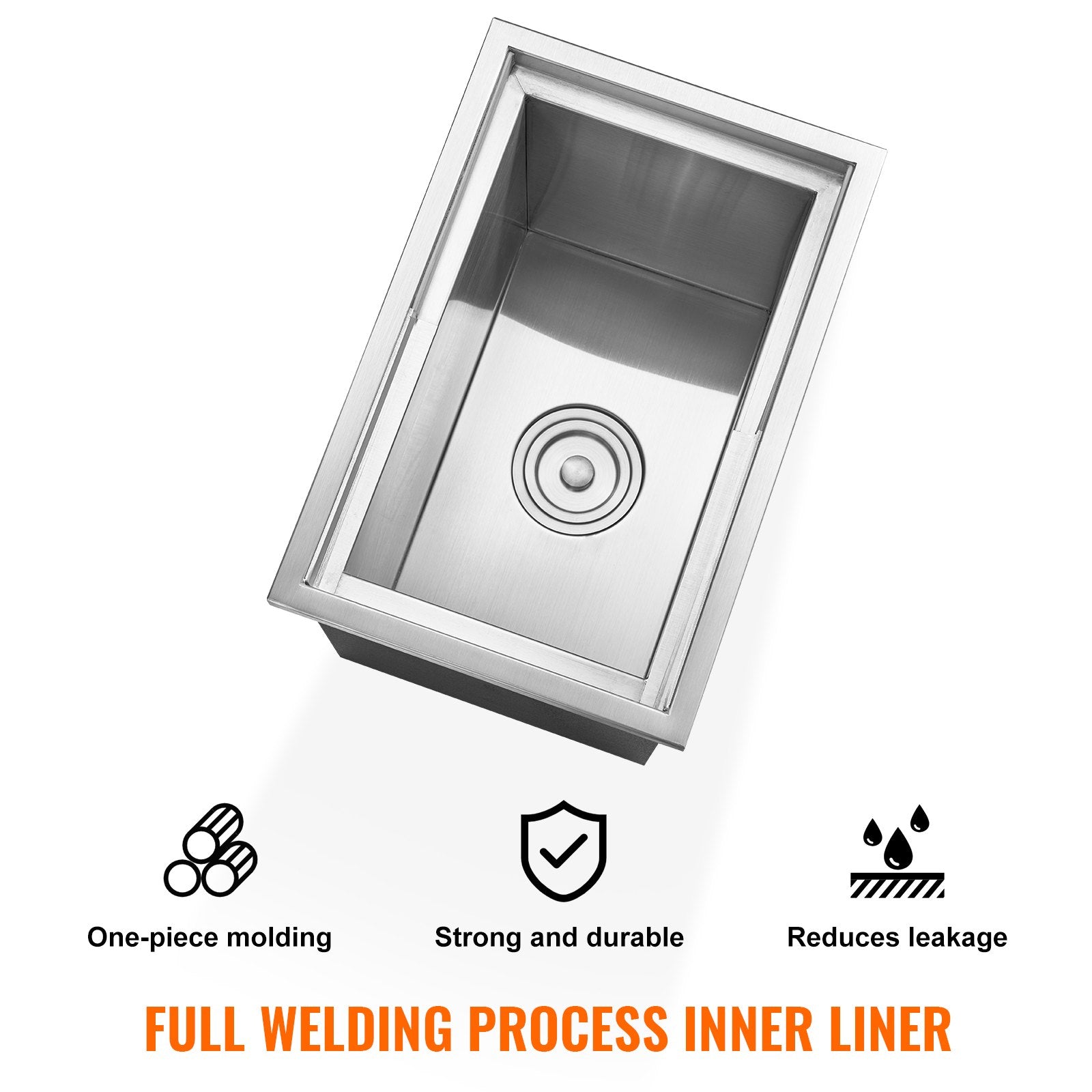 Drop in Ice Chest, 18"L x 12"W x 14.5"H Stainless Steel Ice Cooler, Commercial Ice Container with Sliding Lid, 40.9 qt Outdoor Kitchen Ice Bar, Drain Pipe and Drain Plug Included, for Cold Wine Beer