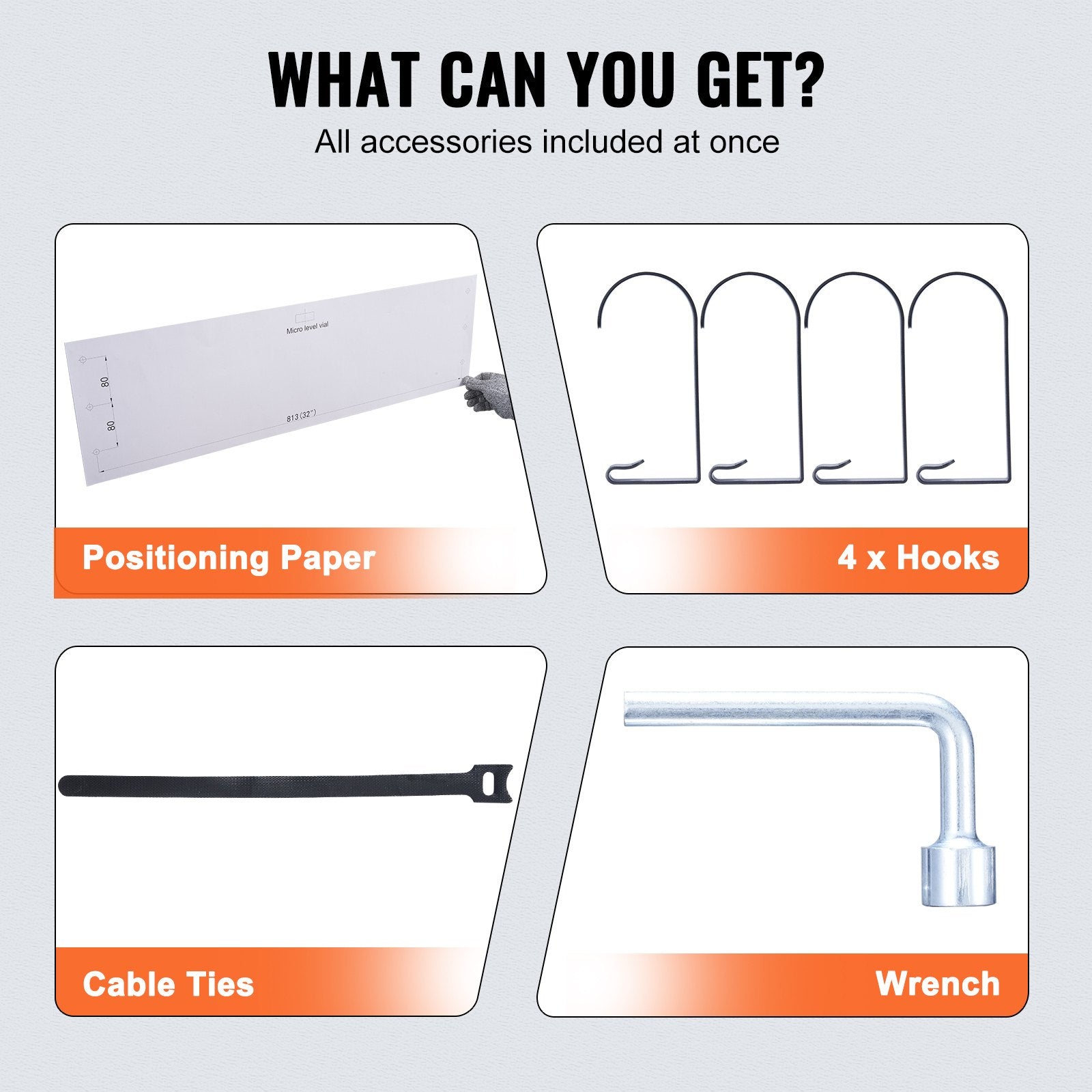 Everything you need: The package includes positioning paper, hooks, cable ties, etc. This heavy duty wall mounted garage shelf is suitable for installation on concrete or wooden walls. If it is a stud wall, please check the hole spacing and not suitable for installation on metal walls.