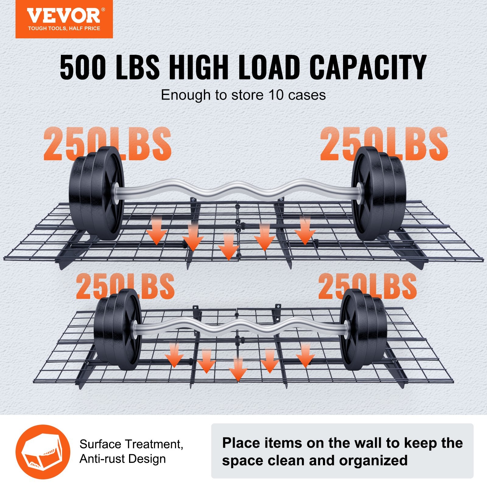 500 lbs High Load Capacity: Our garage wall shelves are made of high quality metal and weigh 64.37 lbs. Each shelf has a maximum load capacity of 500 lbs, making it convenient to hang tools. Installation hole spacing: 18 inches.