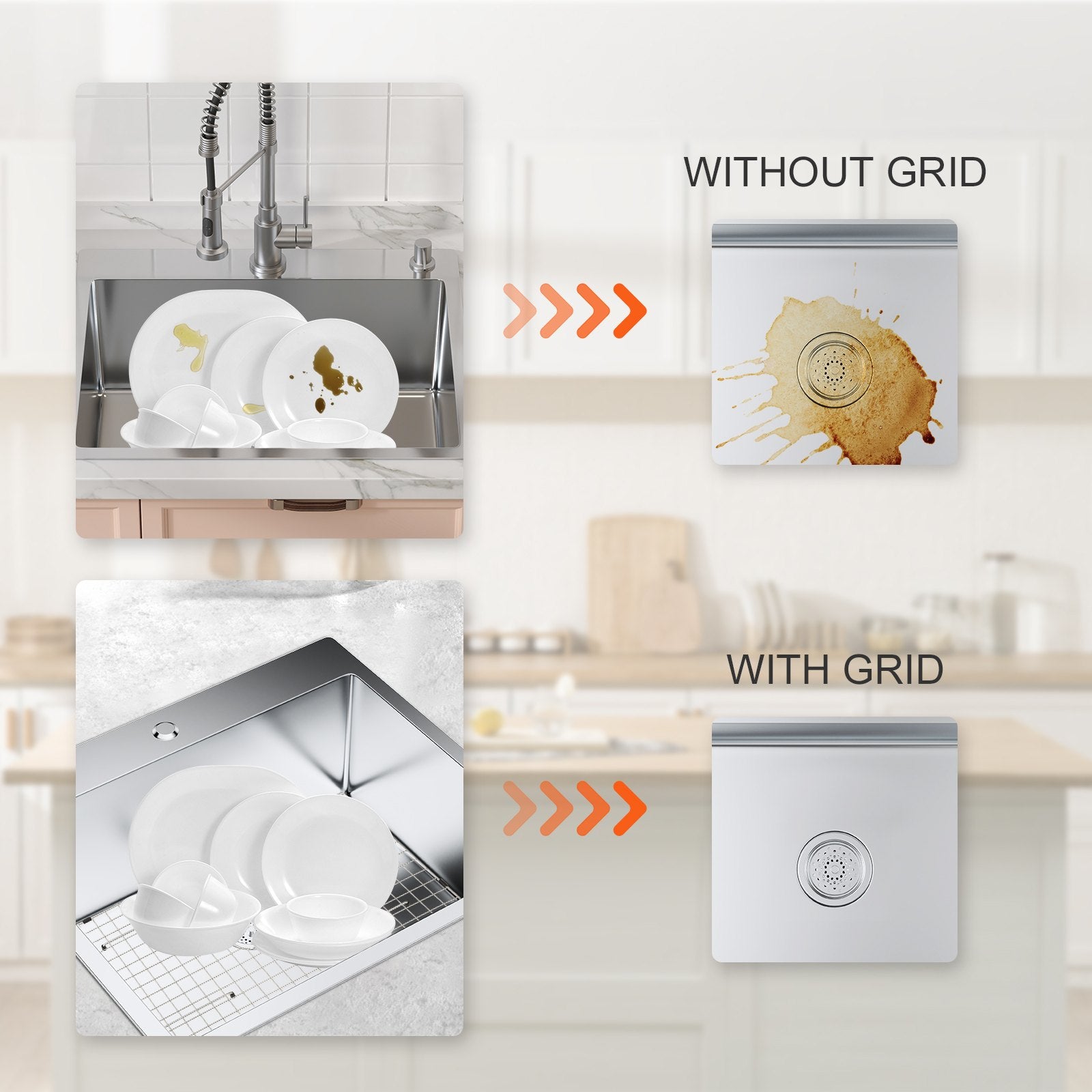 Multifunctional protective grid: This sink grid not only protects your sink but also comes with a range of accessories for added convenience. Use it to dry dishes, defrost food or even as a cooling rack. Improve the functionality of your kitchen work surface with this versatile addition!