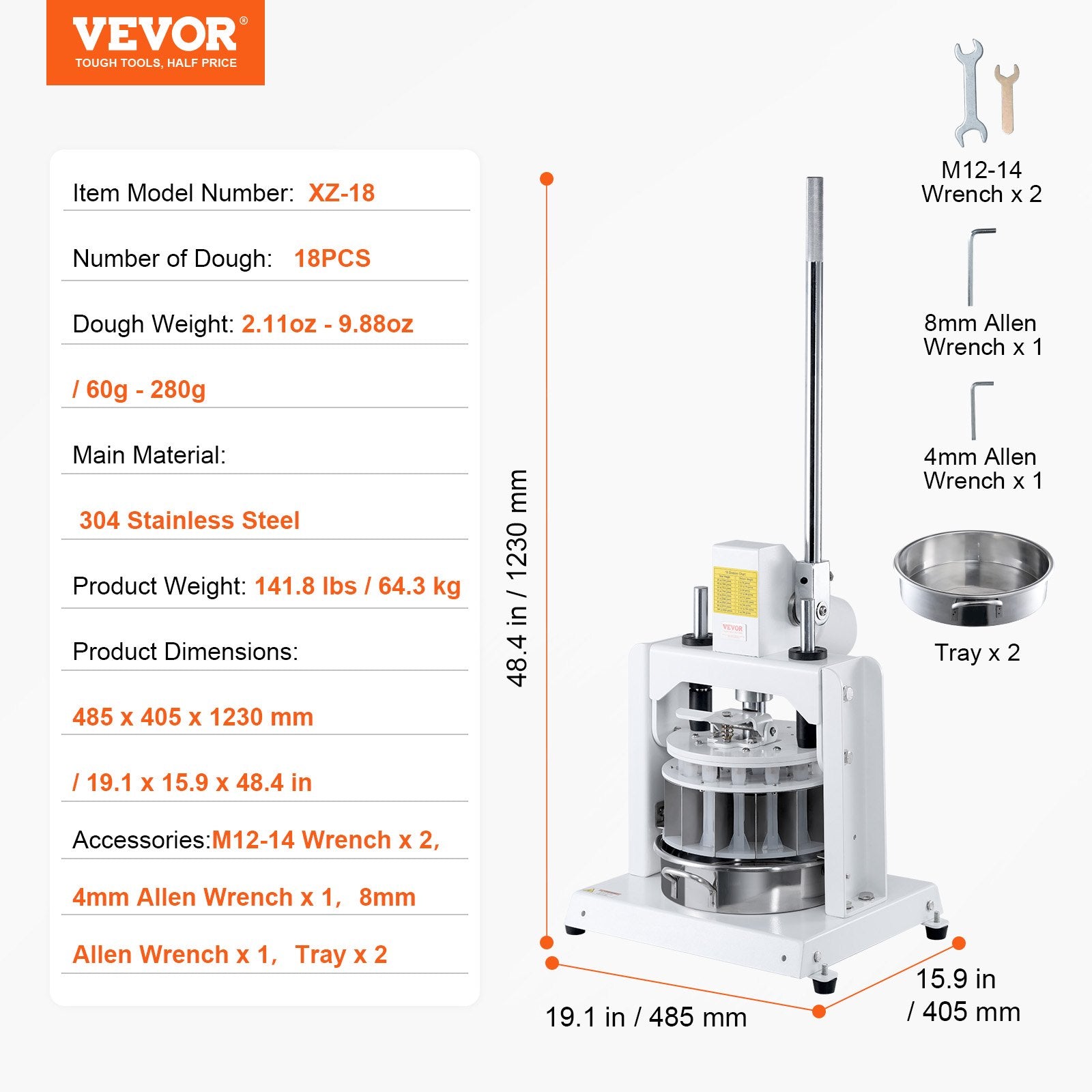 18 Equal Pieces: This electric dough divider can divide a large dough into 18 equal pieces. Each piece can range from 60 to 280 grams (2.11 to 9.88 oz). It has fast, non-stick, efficient dough dividing, avoiding the problem of uneven size caused by manual segmentation.