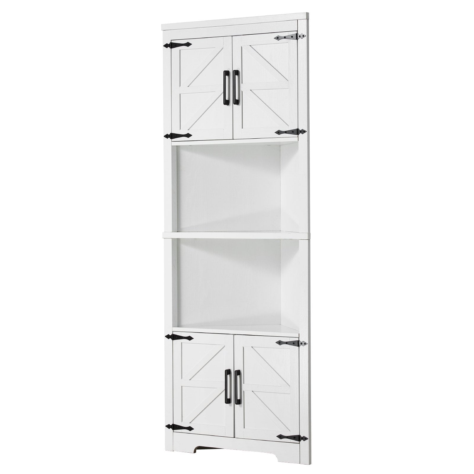 68" Corner Storage Cabinet with 4 Wooden Doors and Adjustable Shelves White