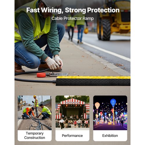 Snabb kabeldragning: Öppna bara det övre locket för att snabbt dra dina kablar. Du behöver inte demontera eller sakta ner installationen. Vår kabelskyddsramp är idealisk för byggprojekt, sportevenemang, mässor, konserter och festivaler.
