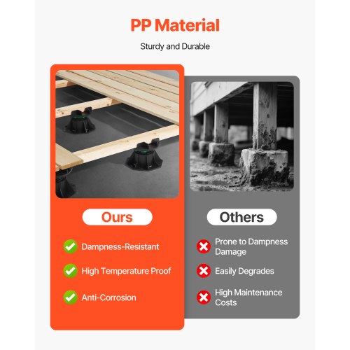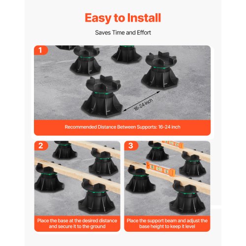Suitable for various patio surfaces: These patio supports are ideal for outdoor decks, patios, greenhouse floors, and more. They are a great alternative to traditional concrete pillars and wooden posts. The lightweight design makes them easy to transport, suitable for all types of construction needs, improving the cleanliness, beauty, and durability of your outdoor space.
