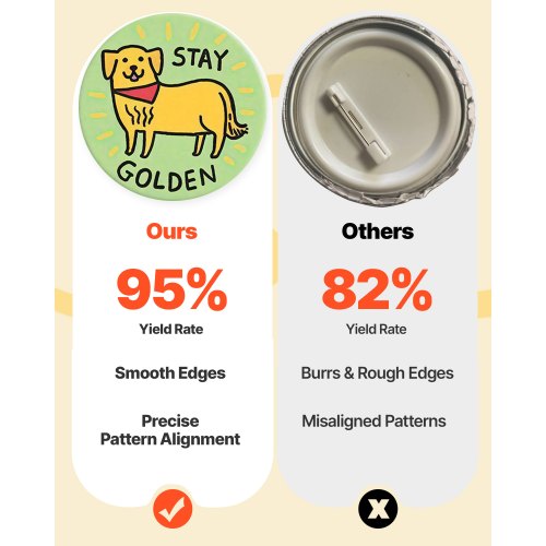 Skapa personliga presenter: Designa personliga märken för alla tillfällen. Vår knapptillverkningsmaskin fungerar även med speglar, nyckelringar, flasköppnare och magneter – förvandla din kreativitet till unika, hjärtliga minnessaker.