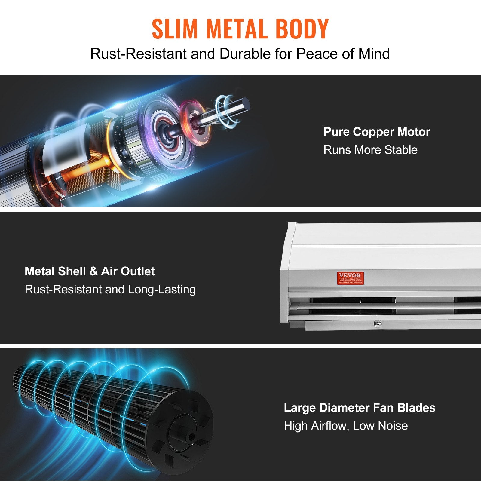 Powerful Air Curtain: Enjoy a powerful air wall with 1200 CFM, creating a calm indoor and outdoor environment. It effectively eliminates dust and bad odors, providing fresh and clean air in both hot summers and cold winters.